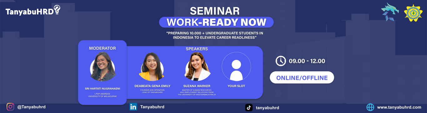 Fakultas Pertanian Universitas Sebelas Maret kolaborasi Tanya Bu HRD dengan Organisasi Kamagrista Untuk mengedukasi 250 Mahasiswa Agribisnis FP UNS untuk dapat mempersiapkan karir sedini mungkin. Kegiatan ini juga merupakan bagian dari edukasi tanyabuHRD untuk 10.000+ mahasiswa di Indonesia. Seminar ini adalah edukasi Rp. 0,- sebagai langkah besar untuk mempersiapkan Indonesia Emas di 2045.
