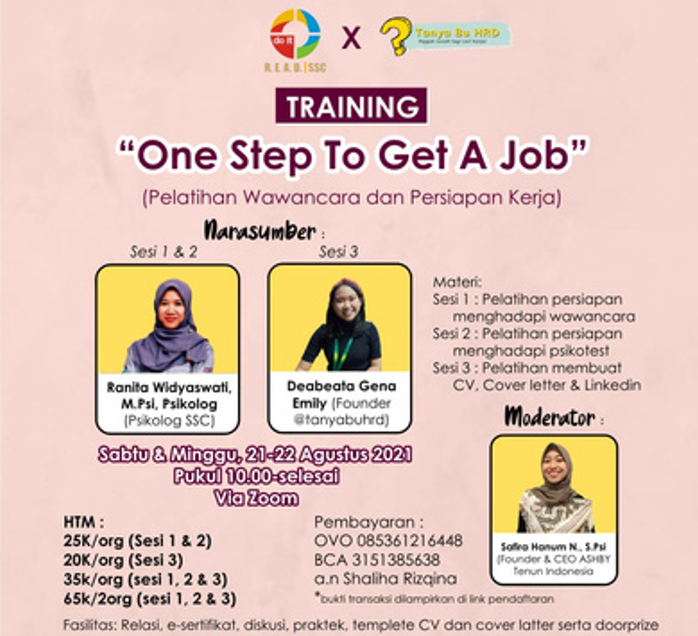 Kolaborasi Tanya Bu HRD dengan AIESEC in Universitas Sebelas Maret terkait dengan tatacara pembuatan CV. Sesi ini merukapan sesi webinar terbuka untuk mahasiswa UNS dan para pencari kerja di Surakarta. Dalam Sesi ini Bu HRD mengajak peserta untuk mengenali potensi diri, arah karir yang dituju, dan juga merangkum pengalaman-pengalaman yang dimiki untuk menyusun […]